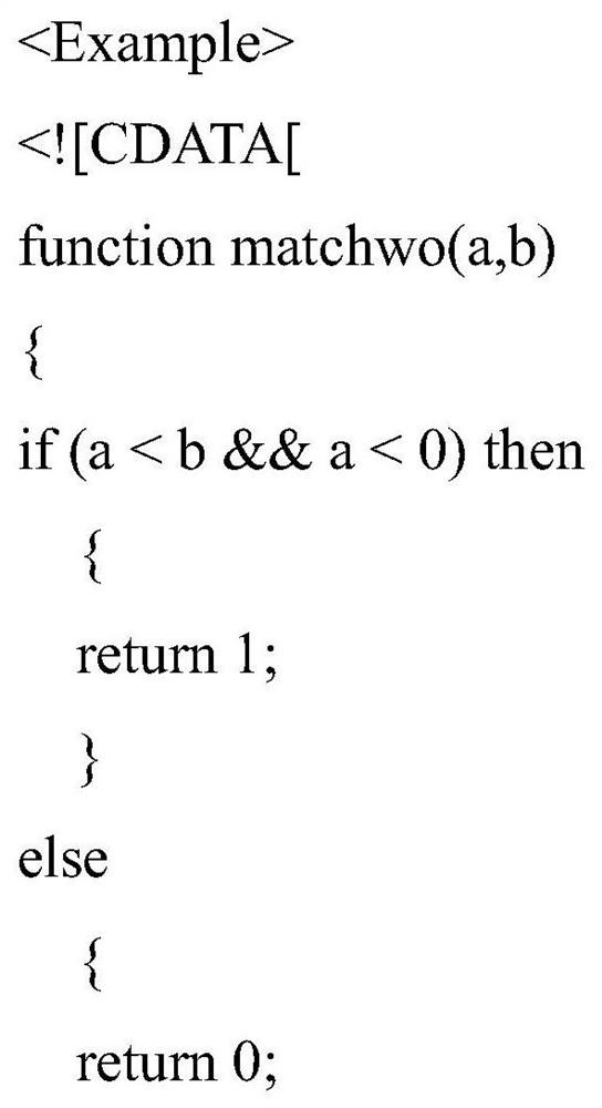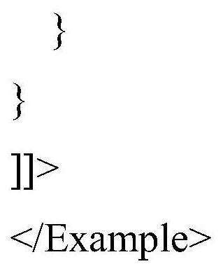 示例节点Example的属性可以包括示例说明CDATA。示例说明CDATA的取值可以为对父元素RULE的C源码例子说明。XML文件中的对应代码可以为: