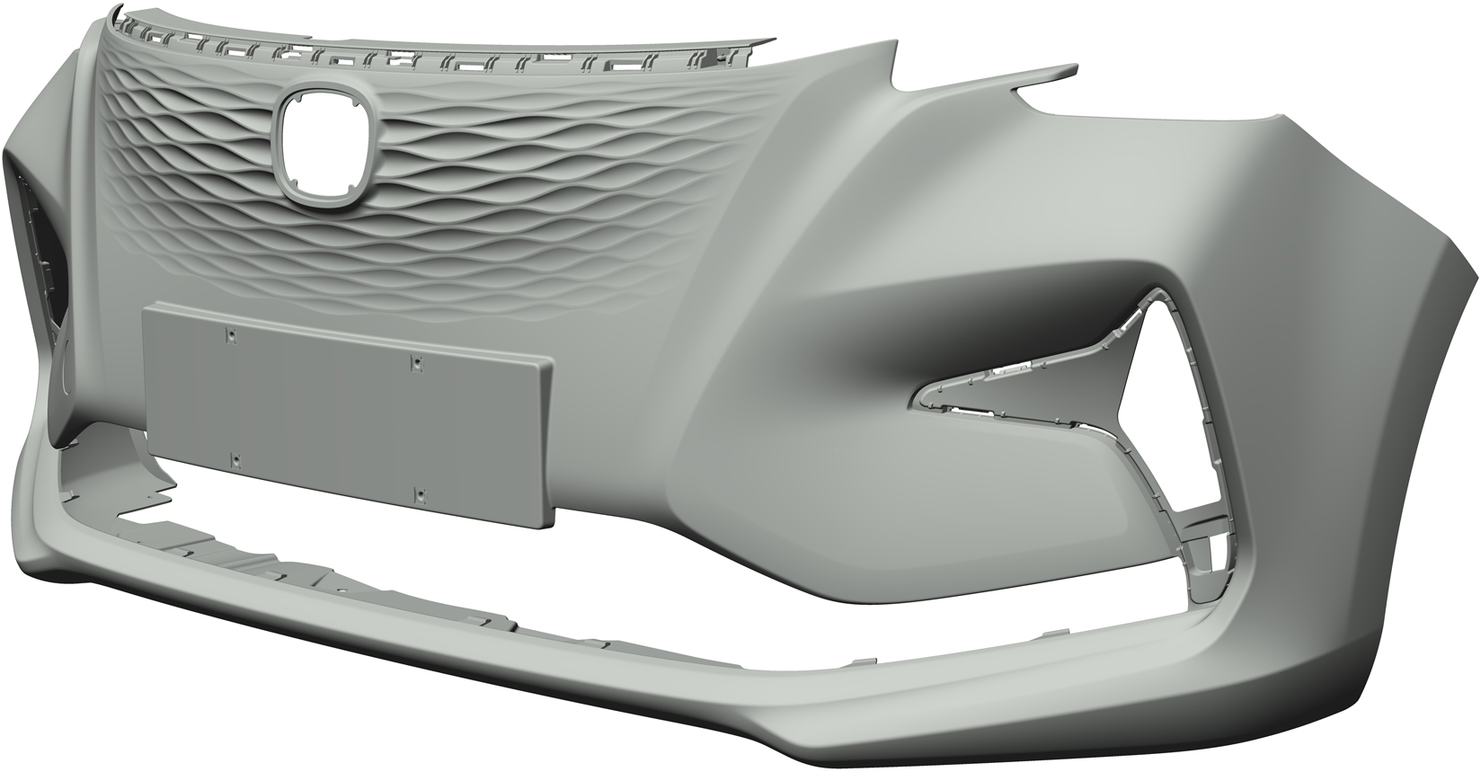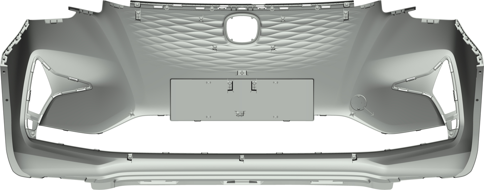 1.本外观设计产品的名称:汽车前保险杠。 2.本外观设计产品的用途:安装在汽车上,用于保护车辆。 3.本外观设计产品的设计要点:在于形状。 4.最能表明设计要点的图片或照片:主视图。