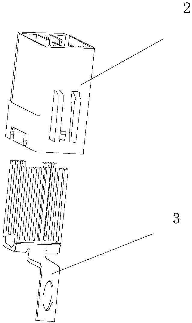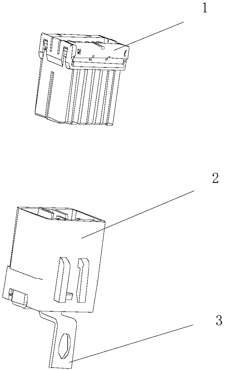 Figure 2 is the structure diagram of the ground terminal and the female end of the connector in a state of separation of the present utility model;