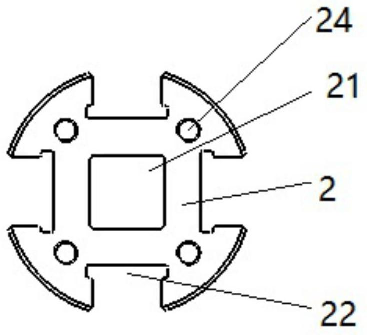 As shown 2, in the embodiment of the present invention, the fixing seat 1 may be provided with a fixing hole 13 for fixing the whole device, for example, the device can be fixed on the assembly operation platform through the fixing hole 13 13, so that the device is prevented from moving, and the operation is convenient. The fixing holes 13 may be, for example, a plurality of fixing holes uniformly distributed around the fixing base. For example, 2 fixing holes 4 uniformly distributed along the circumference of the circular fixing base shown in FIG. 13 may be used, and other numbers of fixing holes 13 may be used. When the fixing base 1 is of another shape, the fixing holes 13 may be distributed in different shapes, such as a square fixing seat 1, and fixing holes 13 may be provided along four sides or opposite sides thereof.