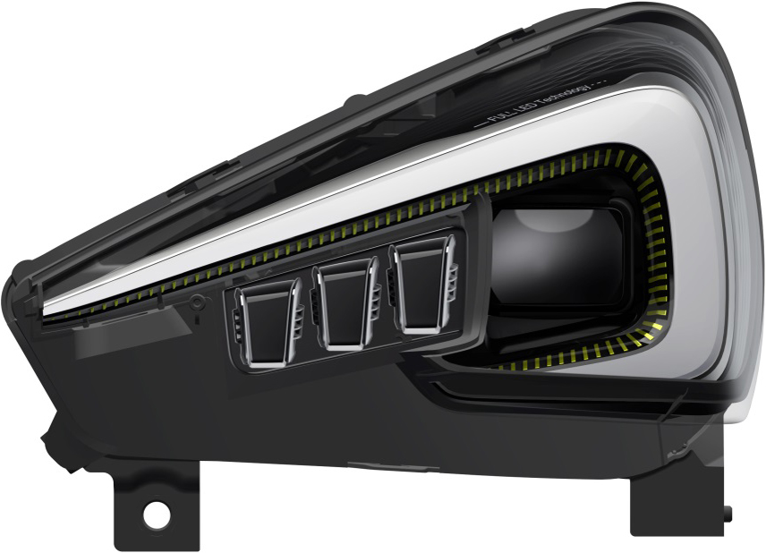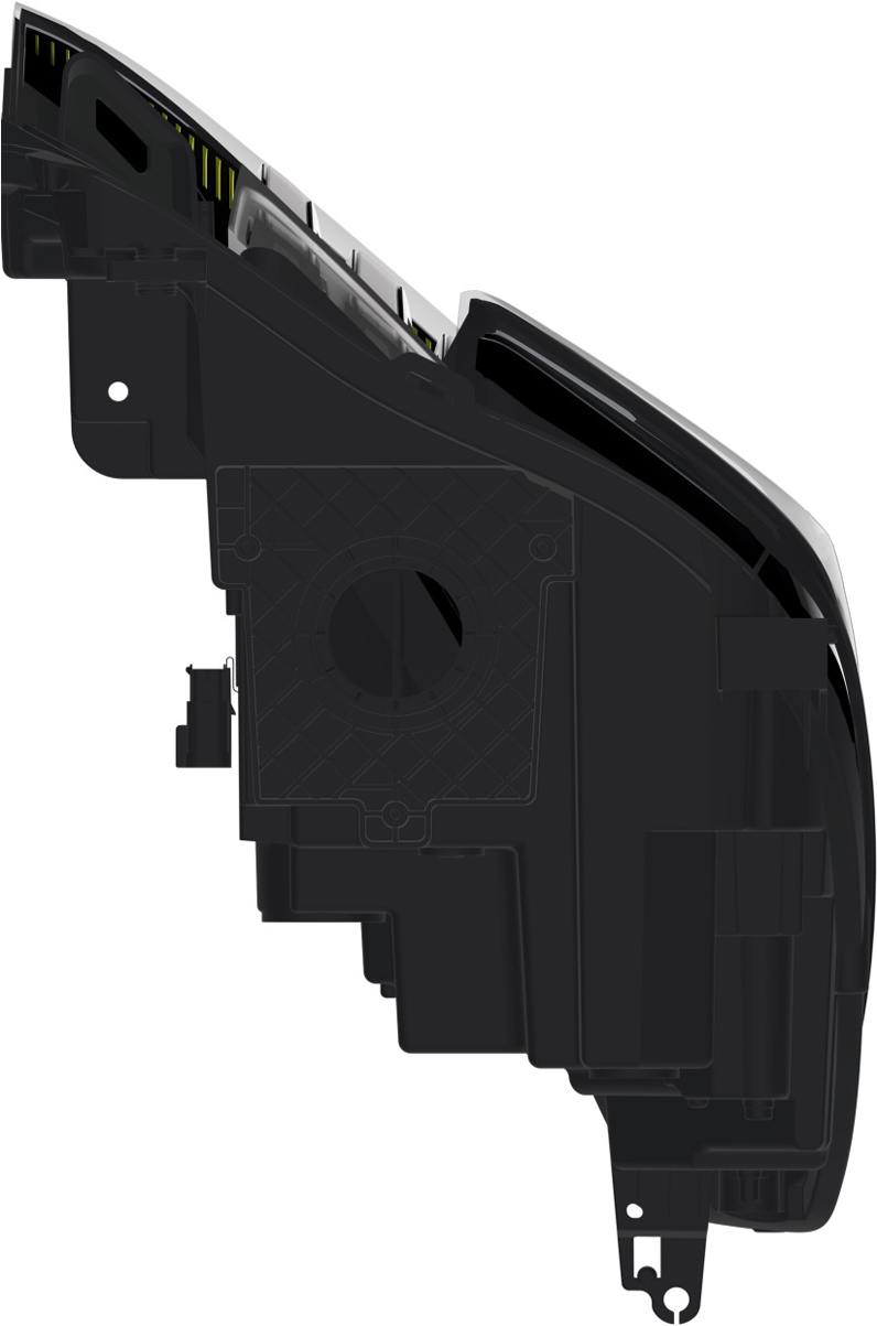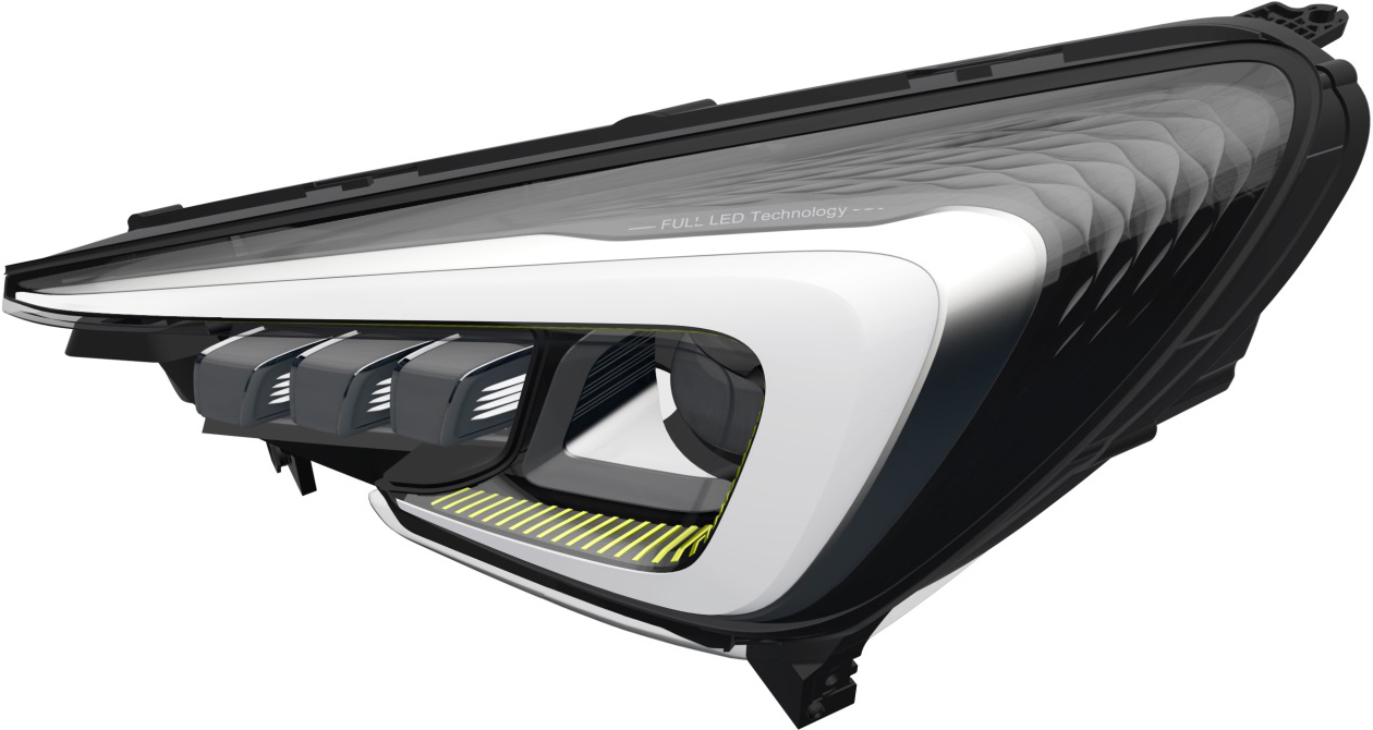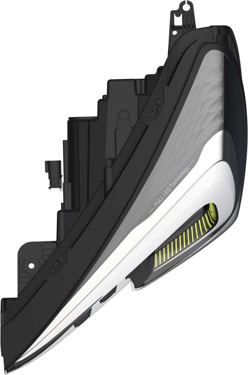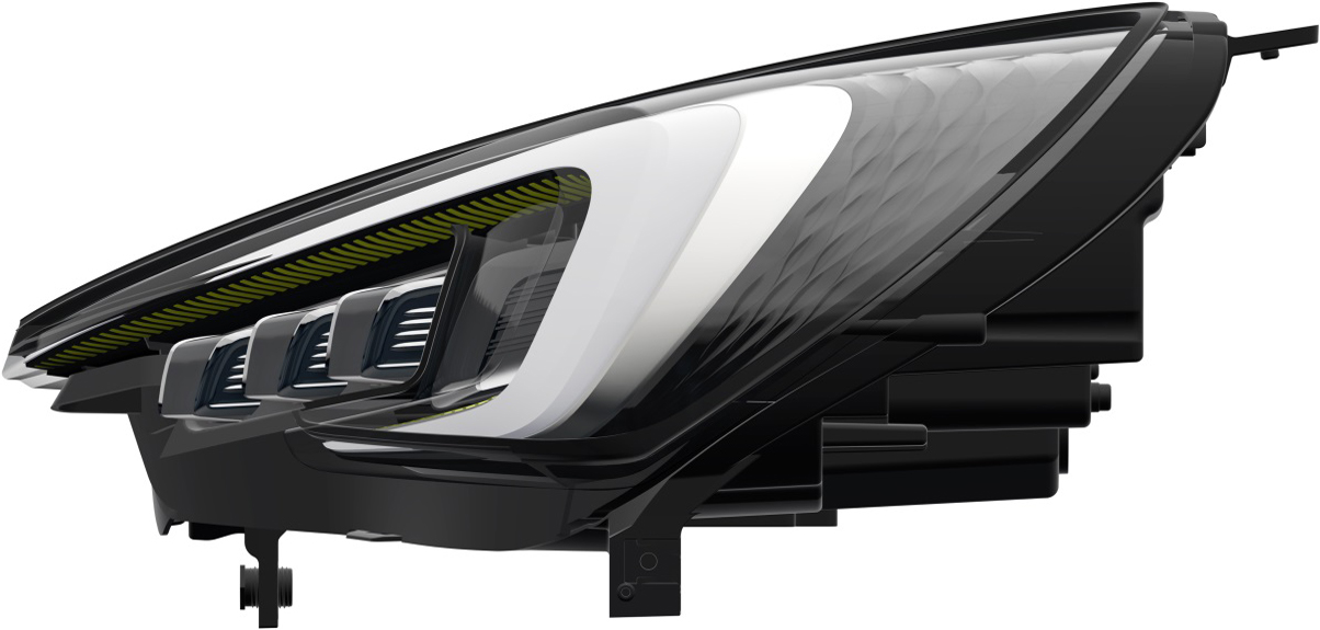 1.本外观设计产品的名称:汽车前大灯。 2.本外观设计产品的用途:安装在汽车上,在驾驶途中,用于提供照明、位置指示和转向提示等。 3.本外观设计产品的设计要点:在于形状。 4.最能表明设计要点的图片或照片:立体图。