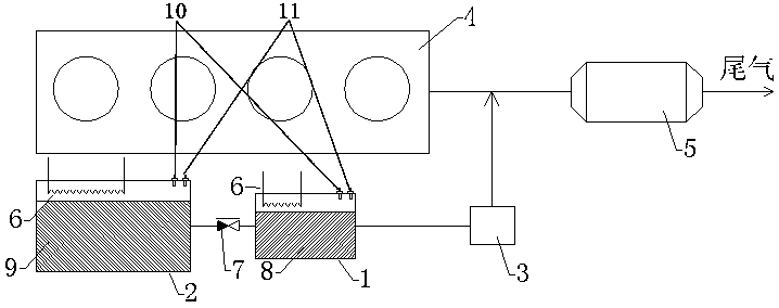 Figure 3 is the chart of ammonia material supply container connected with the exhaust gas the exhaust gas pipeline of the present utility model.