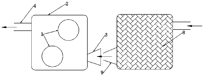As shown in Figure 4-7, the [...] 1 is cylindrical, has 5L - 40L of the volume, the tank wall thickness is 2 mm - 4 mm, and its material is by ammonia gas corrosion resistance of the aluminum alloy or made of stainless steel, integral full heat SSCR module taking heat from the casing of the device 2 can be arranged in 2 - 5 a [...] 1, integral full heat SSCR module taking heat from the casing of the device 2 a plurality of inner [...] 1 can be equal to the size of the can also be unequal.