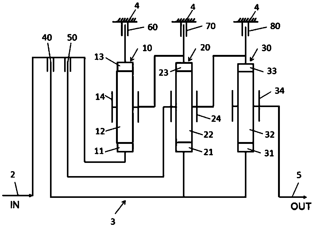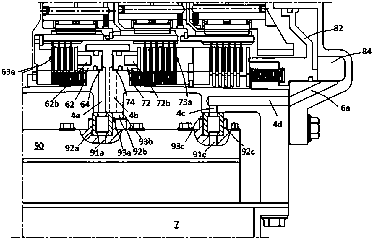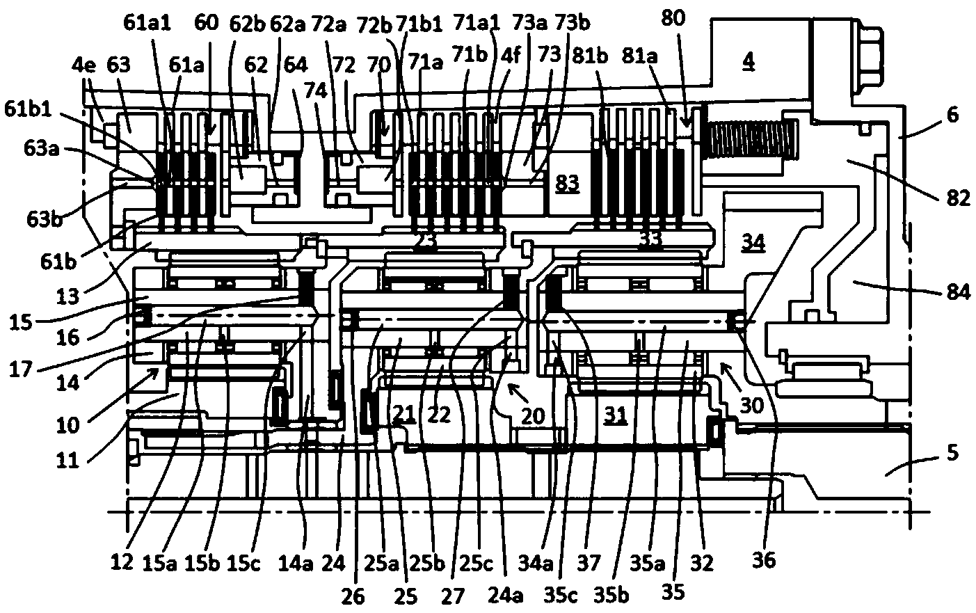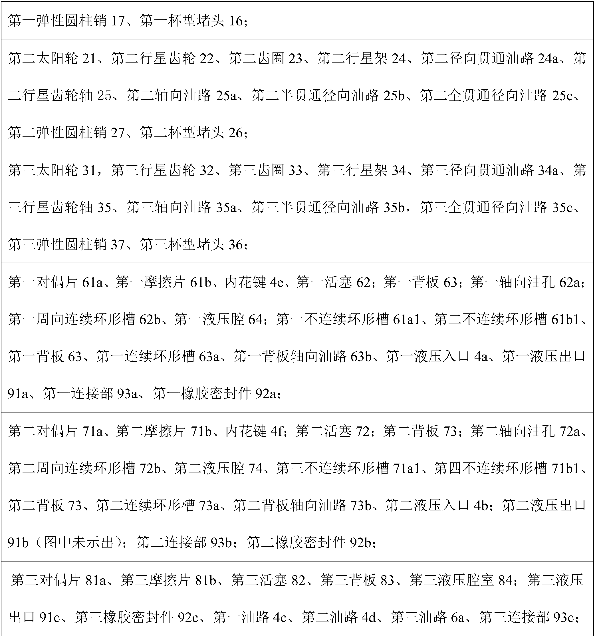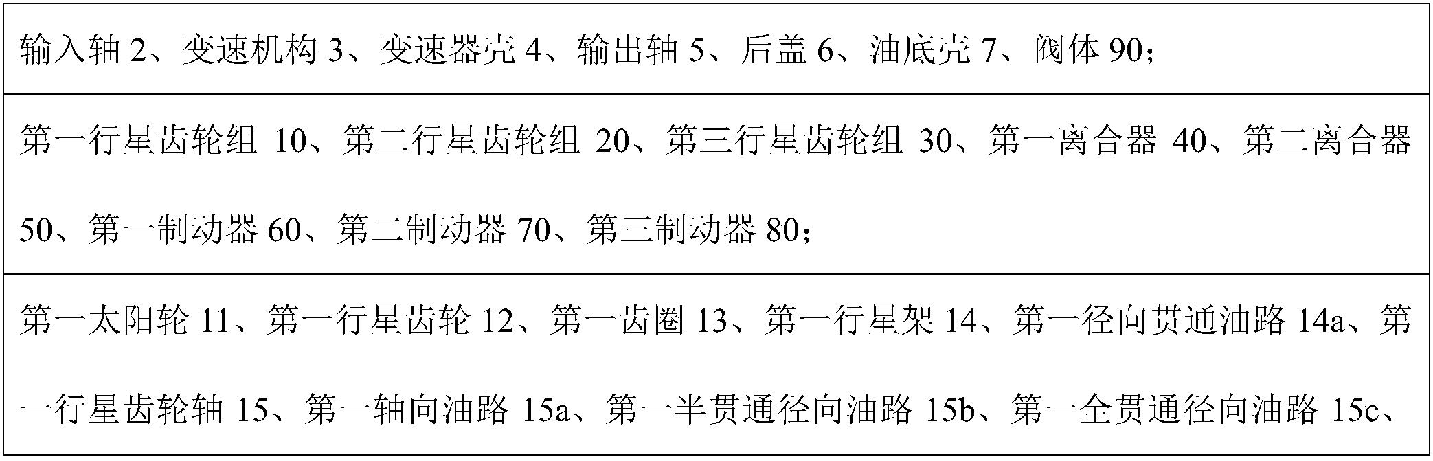 技术领域 本发明属于自动变速器技术领域,具体涉及一种6档自动变速器。 背景技术 汽车中搭载的自动变速器,通过多个摩擦元件的选择性结合,对发动机通过变矩 器输出给变速机构的动力传递路径进行切换,从而实现不同速比。此种自动变速器中,存在 如何给变速机构多片式制动器供应液压油和润滑油,如何向构成变速机构的行星齿轮的轴 承部供应润滑油,以提高其性能和可靠性的问题。 一般而言,使用上述多片式制动器结合的液压,从安装在变速器壳体上的阀体供 应给设置于活塞背部的液压腔并被控制。但是该液压并非从阀体直接供给液压腔,而是从 阀体经由设置于变速器壳体或制动器壳体的壁内部油路供应。当通过变速器壳体壁内部油 路,或通过变速器壳壁内部油路和制动器壳壁内部油路向液压腔供应液压时,油路会变长 或者油路的弯曲会变多,因此油路的液阻会变大,液压供应时的响应性下降,制动器的控制 性变差。而且油路的连接部,即密封部变多,增加了液压泄漏的可能性。 为了润滑行星齿轮的轴承部,从设置在中心轴内的轴向油路沿半径方向的油孔通 过离心力流出润滑油,导入行星架中的径向油路,经由形成于行星齿轮轴上的内部油路与 从该油路连通至轴外周面的油孔,供应至行星齿轮和行星齿轮轴之间,润滑轴承部。为了保 证行星齿轮的轴承部在高速旋转时获得足够量的润滑油,除了要求装配状态时行星齿轮轴 上的内部油路能完全和行星架中的径向油路对齐或包容外,还要求旋转时行星齿轮轴和行 星架之间轴向固定,并且不能发生相对转动。而传统的方法: 一是在行星齿轮轴上打径向斜孔导通行星架上的径向油路和上述连通至轴外周 面的油孔; 二是使行星齿轮轴两端在热处理时避免硬化,和行星架装配时使用铆接方式或是 特殊设计行星齿轮轴结构,使用卡环在行星架上进行轴向定位并防转。 而这些结构设计和方法除了并不能完全满足上述两条要求外,还造成了结构设计 复杂,加工难度增大,成本增加的问题。 在传统自动变速器中,变速机构多片式制动器的润滑油来自各自的行星齿轮轴承 部,润滑油沿轴向通过轴承部后,碰到设置在行星齿轮和行星架之间的止推垫片后,液流方 向发生改变,变成径向流动,在离心力作用下,液流甩出,并被收集到设计在齿圈内侧的集 油槽中。进一步在离心力作用下,穿过设计在集油槽位置的径向油孔,再径向穿过安装在齿 圈外侧的摩擦片和对偶片,从而对多片式制动器进行润滑冷却。由于此种润滑不受控制,为 连续润滑,在某个多片式制动器不结合时,其润滑油一直不断地径向穿过其摩擦片和对偶 片。而根据文献资料记载,在多片式制动器不结合时,其拖曳力矩和通过其摩擦片和对偶片 的润滑流量有直接关系,润滑流量大,拖曳力矩大,润滑流量小,拖曳力矩小。这说明上述多 片式制动器的润滑方式使得拖曳力矩一直存在,造成整个变速器的效率不高。 发明内容 本发明所要解决的技术问题在于针对上述现有技术中的不足,提供一种自动变速 器,通过缩短去往多片式制动器活塞腔的油道长度,改善多片式制动器的控制性,减少液压 泄漏的机构;使行星齿轮轴上内部油路和行星架上的径向油路完全对齐,且行星齿轮轴和 行星架之间不会发生相对运动,并采用多片式制动器可选择性润滑机构,减少多片式制动 器的拖曳力矩,提高效率。 本发明采用以下技术方案: 一种自动变速器,包括设置在变速器壳内的变速结构,所述变速结构的输入端通 过输入轴与液力变矩器连接,输出端通过输出轴带动传动轴驱动后桥转动,所述变速机构 包括两组离合器以及三组行星齿轮组,三组所述行星齿轮组分别对应连接三组制动器,所 述变速器壳的右侧设置有后盖,下侧设置有油底壳,三组所述制动器与油底壳之间设置有 用于提供液压的阀体,三组所述制动器包括第一制动器、第二制动器和第三制动器,三组制 动器内的活塞以及活塞内外两侧的密封圈各自与对应的变速器壳或后盖共同形成三个密 闭的液压腔,所述液压腔包括第一液压腔、第二液压腔和第三液压腔,所述阀体各经过一个 连接部连接对应的液压腔。阀体固定在油底壳上,通过将油底壳安装到变速器壳体上,设置 在阀体上的液压出口周围的密封部件将被压缩,直接密封上述变速器壳体上短的的入口油 路和阀体上的液压出口,无需在连接部进行密封连接阀体与变速器壳体的作业。 进一步的,在第一液压腔和第二液压腔正下方的变速器壳处以及对应第三液压腔 的变速器壳处均设置有圆柱凸起,在每个圆柱凸起的中心设置有液压入口,在所述阀体对 应位置设置有圆柱凸起,凸起中心位置设置有液压出口,液压腔位于变速器壳体上,在壳体 上液压腔位置正下方有非常短的入口油路,通过此入口油路和连接部直接连接位于上述阀 体上的液压出口,每个所述连接部均设置有圆柱状的橡胶密封件,橡胶密封件的中间带孔, 孔的孔径会大于液压入口和液压出口的直径,避免装配后堵塞液压入口和液压出口。 进一步的,在阀体和变速器壳之间的第一连接部通过第一橡胶密封件、第一液压 入口与第一液压腔连接形成第一短油路,第二连接部通过第二橡胶密封件、第二液压入口 与所述第二液压腔连接形成第二短油路,在壳体上液压腔位置正下方形成非常短的入口油 路,通过此入口油路和连接